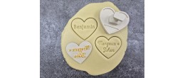 Le modèle coeur fait partie de notre collection d'emporte-pièces modulaires imprimés en 3D. Personnalisable avec une à trois lignes.